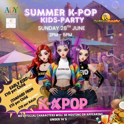 Back to What's OnShareWhat's Onvia SkiddleK-POP Kids Summer Party17 April 2026Summer K-Pop Kids Party - Northampton A fun-filled afternoon for kids under 14 featuring music, dancing, karaoke, games, glitter tattoos, hair & maRead full article at SkiddleI'm interestedComments No comments yet. Be the first to share your thoughts!